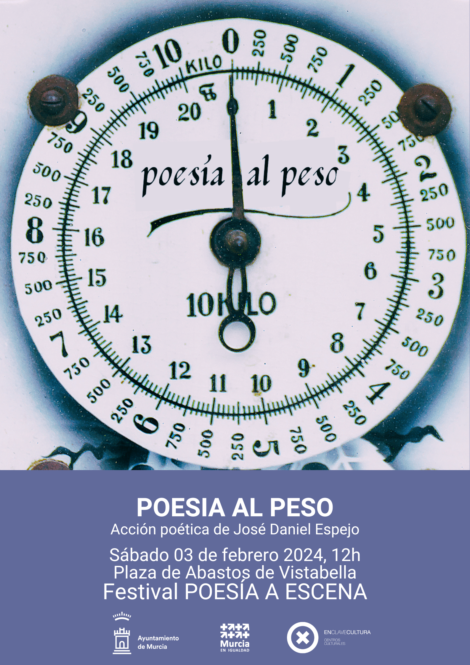 Dentro del marco de la segunda edición del festival Poesía a Escena, llevamos a los mercados esta acción poética en la que José Daniel Espejo creará poemas únicos “por encargo” a partir de dos palabras elegidas por los participantes. Ubicado dentro del Mercado de Abastos, como un puesto más, tendremos la ocasión de ver en directo su forma de trabajar la poesía rápida y aleatoria, además de obtener un poema único manuscrito del autor. Cada poema tendrá una extensión de entre 6 y 20 versos y se entregará sobre una única cartulina de tamaño A4 y alto gramaje, a tinta negra, en letra mayúscula, fechado y con la firma del autor.